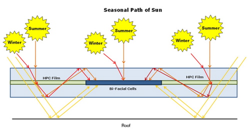 Note: HPC Film has been field proven in installations for more than seven years and has shown no significant degradation or loss of performance. The highly stable film improves the efficiency of solar modules based on monocrystalline silicon, thin film, or virtually any PV material.
